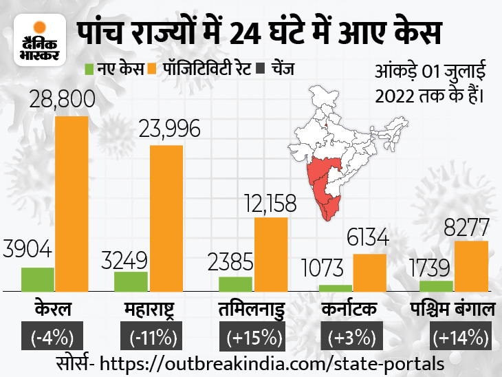 The maximum number of cases of corona are being reported in six states of the country. These include Kerala, Maharashtra, Tamil Nadu, Karnataka, West Bengal and Delhi. The maximum number of cases are coming from Kerala and Maharashtra. After Kerala-Maharashtra, in Tamil Nadu too, daily cases are coming above two thousand.